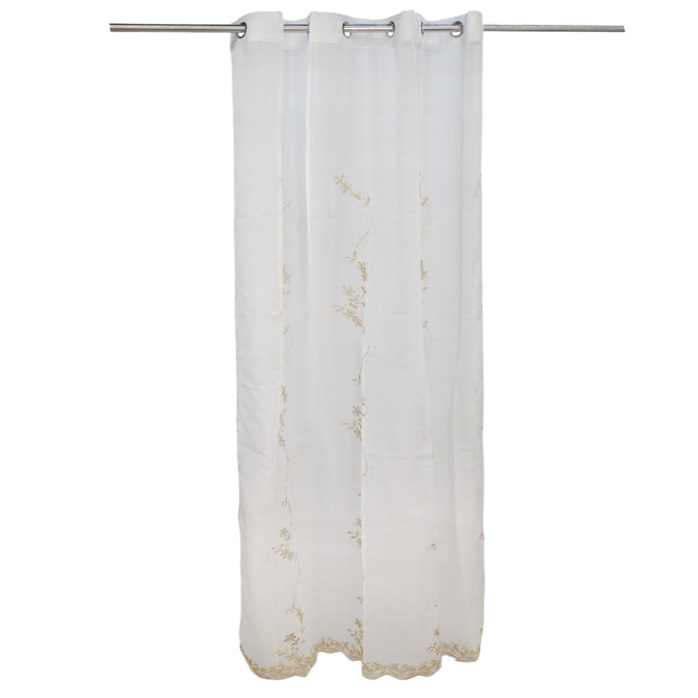 Net curtain with rings , 100% polyester, white/gold, 140x260 cm