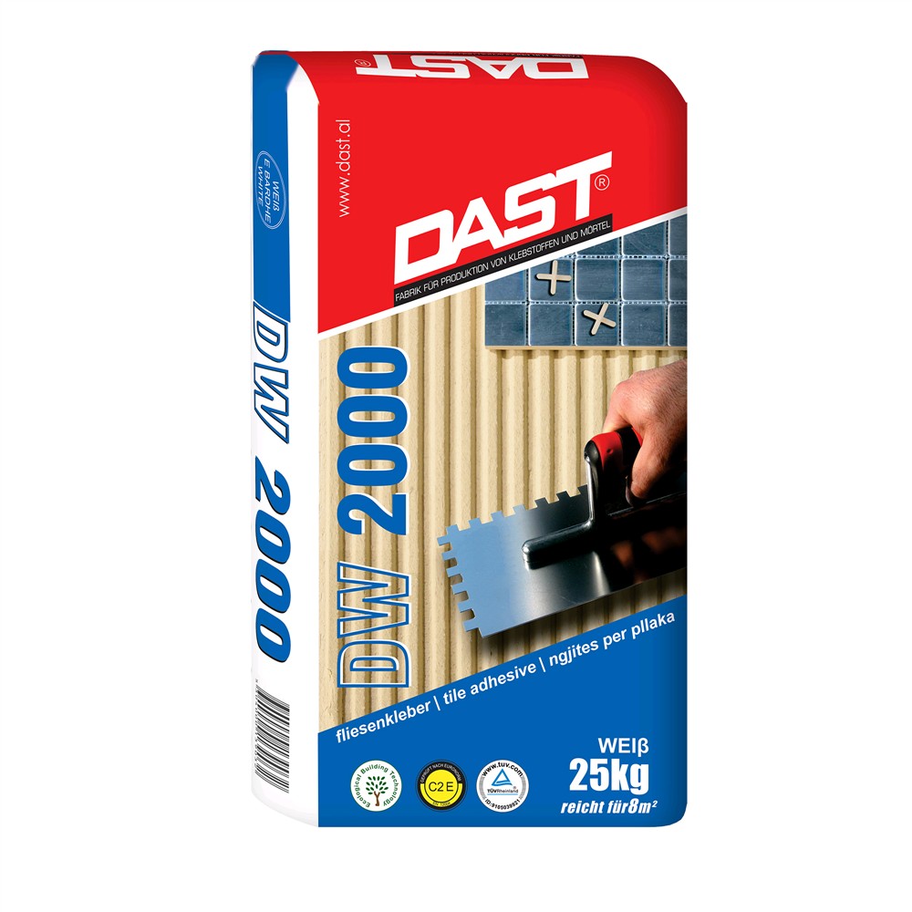 DW 2000 possesses an optimal adhesive force for each kind of traditional support, as well as good waterproofing characteristics and long workability. It is recommended the application in layers of up to 5 mm, induration is uniform, no contraction or layer holing. It is classified according to EN12004, category C2E. It is suitable for the adhesion of ceramic tiles, gres porcelain, and cement-based floors for outdoor and indoor application, for the adhesion of ceramic tiles in balconies and terraces. While for tile-on-tile superposition and on natural stone material, one-carboard walls, wet premises, it should be reinforced with FLEX additive.