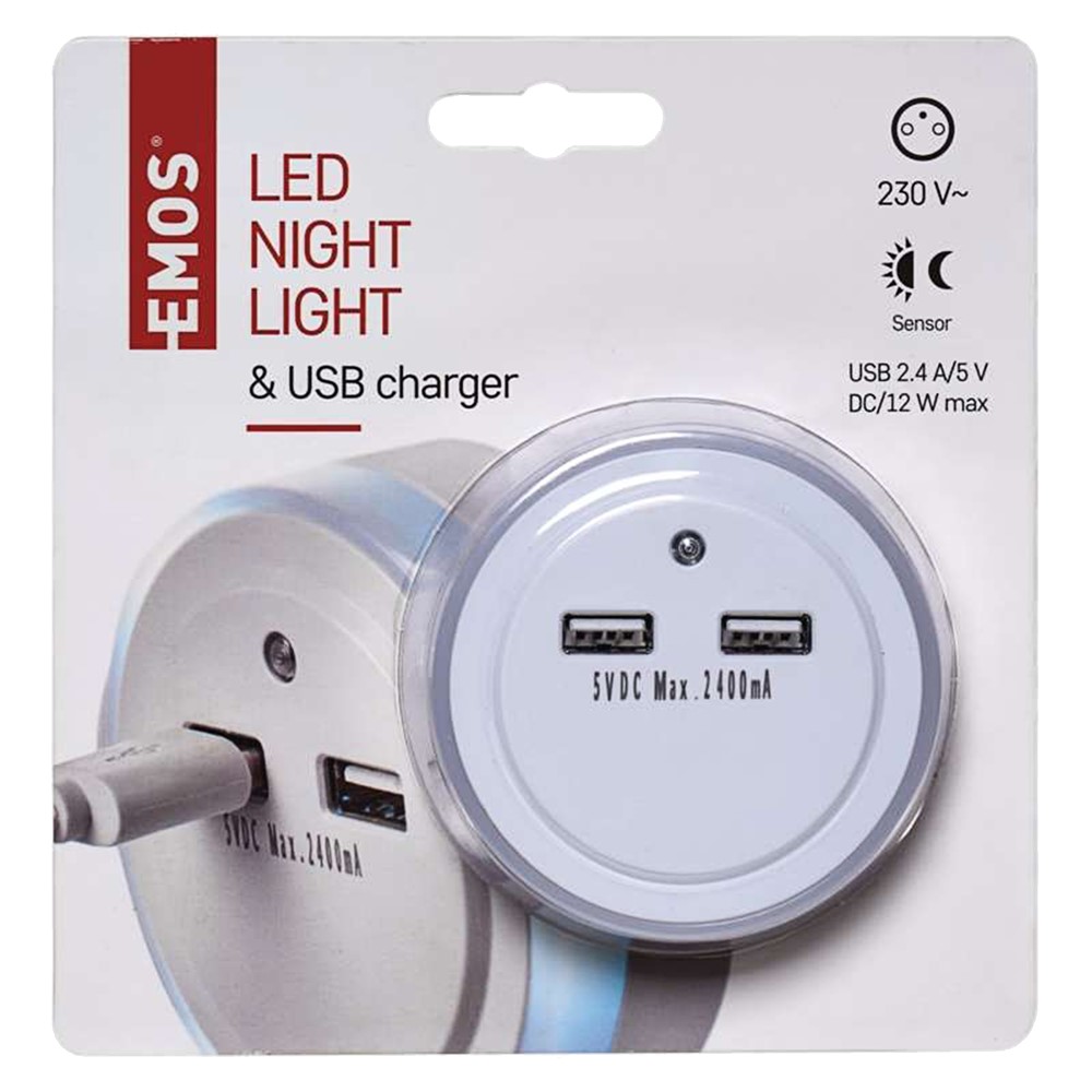 Night light, Emos, 3xLED, two USB outputs, 2.4A / 5V