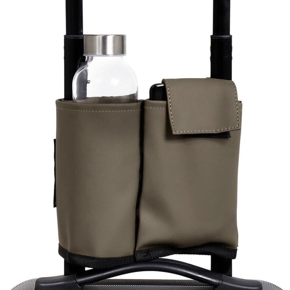 This Norländer suitcase bottle holder is a practical accessory for any trip. It fits snugly on the handle of your suitcase and offers plenty of storage space for bottles and other accessories. The first compartment is ideal for smaller items like your phone, power bank, headphones or charger. The second compartment is designed to hold your water bottle. On the back, there is a zippered pocket, perfect for safely storing money or important documents. Ideal and suitable for any travel suitcase.