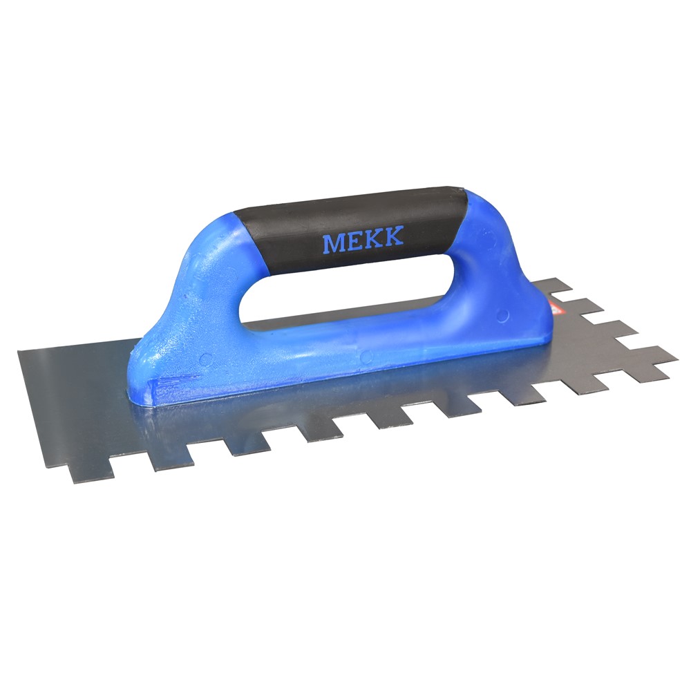 Made of special steel. Compression resistant and with high elastic properties, as it retains the starting shape despite deformations during application at work. Used for the application of glue and similar materials on medium and large application surfaces such as paving slabs, tiles for clothing, etc.