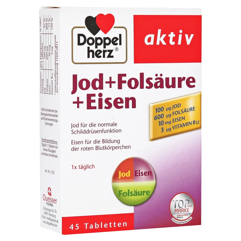 Nutritional supplement, with a clinically tested formula, enriched with 100 µg of iodine, folic acid, iron and vitamin B12, which supports the normal functioning of the thyroid, helps in the normal formation of blood, supports the formation of red blood cells and helps in normal functioning of the immune system. How to use: it is recommended to use 1 tablet per day.