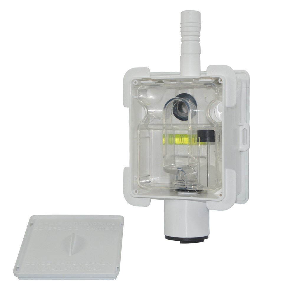 THE TRAP HAS BEEN DESIGNED TO SOLVE ONE OF THE MOST COMMON PROBLEMS ENCOUNTERED IN AIR CONDITIONING SYSTEMS PRODUCED USING READY-TO-PLUMB ENCLOSURES: ODOURS COMING FROM THE CONDENSATE PIPE. BY INSTALLING THE TRAP ON THE DRAIN LINE WHILE THE SYSTEM IS BEING PUT IN RESULTS IN A PERMANENT BARRIER THAT STOPS ODOURS TRAVELLING BACK INSIDE.