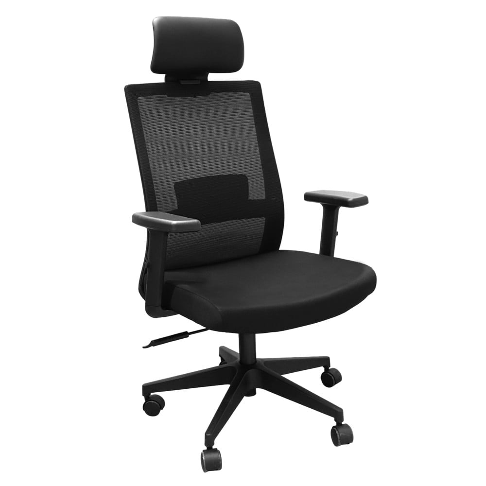 A functional and modern office chair, equipped with wheels and supportive armrests to ensure comfort during work. The durable plastic structure is combined with nylon wheels that provide smooth movement on various surfaces. The mesh backrest offers optimal ventilation and ergonomic support for the spine, while the textile upholstery ensures comfort even during long-term use. The black color gives it an elegant and professional appearance, suitable for any office environment. With dimensions of 50x50 cm and an adjustable height ranging from 113 to 123 cm, this chair is practical and adaptable to the user’s needs.