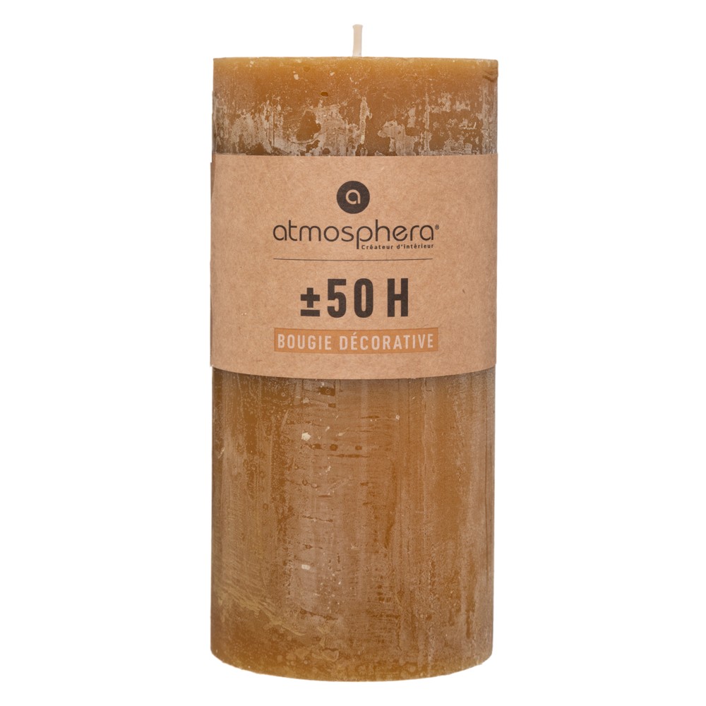 The "Olia" cylindrical candle, made of paraffin, yellow in color and DIA dimensions.6.8xh14 cm, brings an illuminated and warm atmosphere to your home. This yellow candle can be used as a decorative element in many environments of your home.