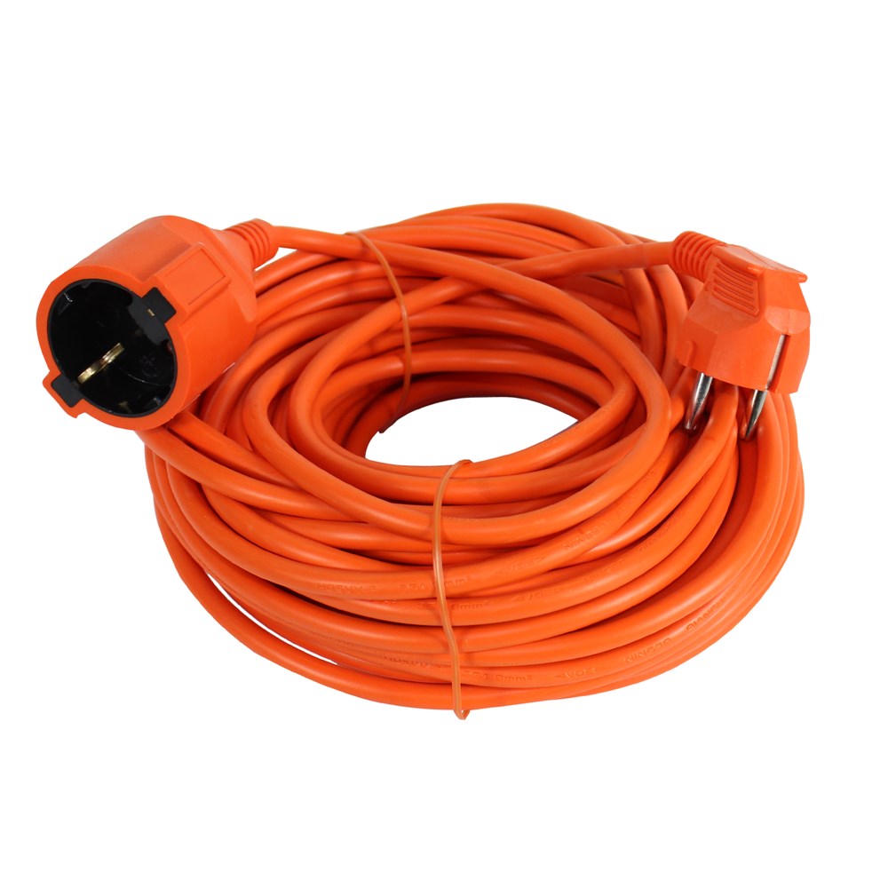 single socket (schuko type) • orange colour • ~230 V/10 A max • length 20 m • packaging: 1 pc., shring plastic • carton quantity: 1/-/12 •