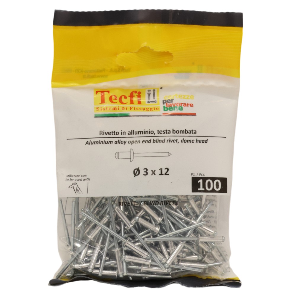 Open end dome head blind rivets, al/zp steel, Ø 3x12mm, Bag 100