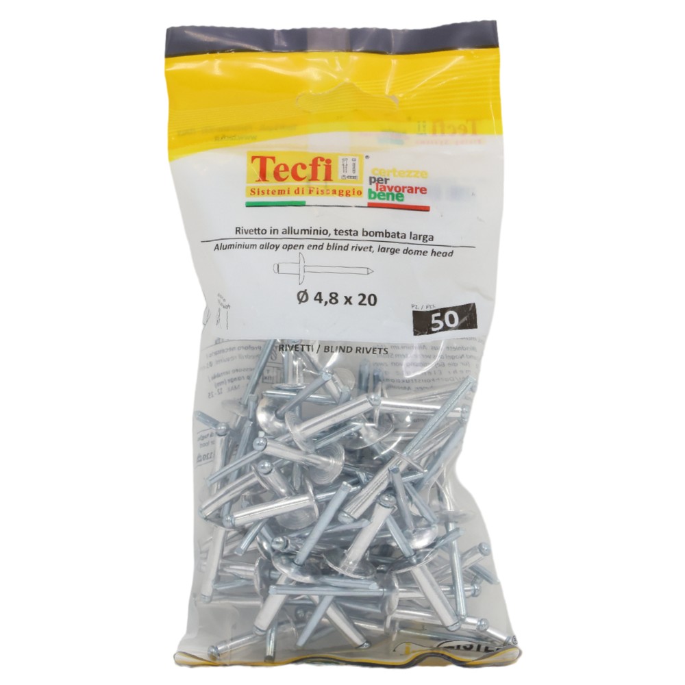 Open end large dome head blind rivets, al/zp steel, Ø 4,8x20/14mm, Bag 50
