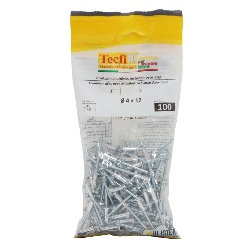Open end large dome head blind rivets, al/zp steel, Ø 4x12/10mm, Bag 100