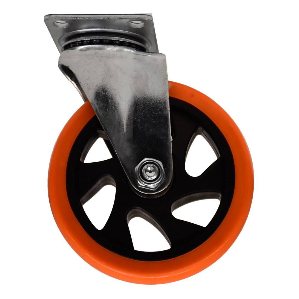 This caster helps move heavy loads on smooth, hard surfaces and finished concrete floors where quiet movement and floor protection are vital. It attaches easily with a plate and 4 screws.