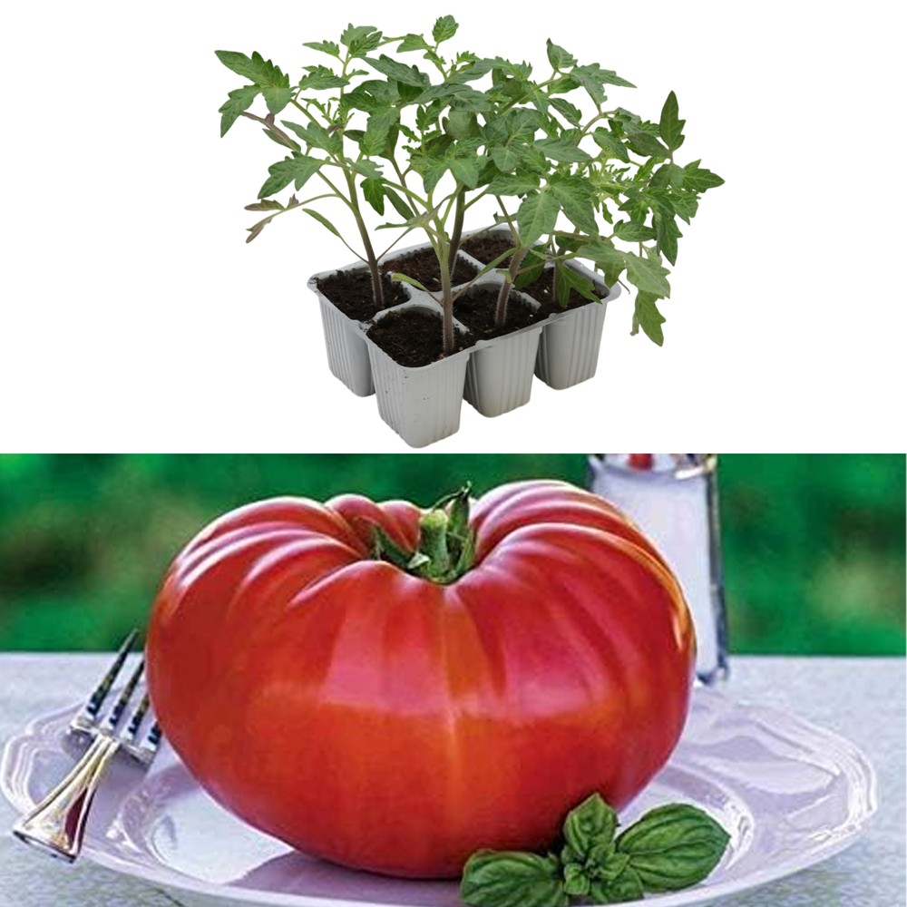 Organic Italian large-seeded tomato seedlings, gigante beefsteak pack 6