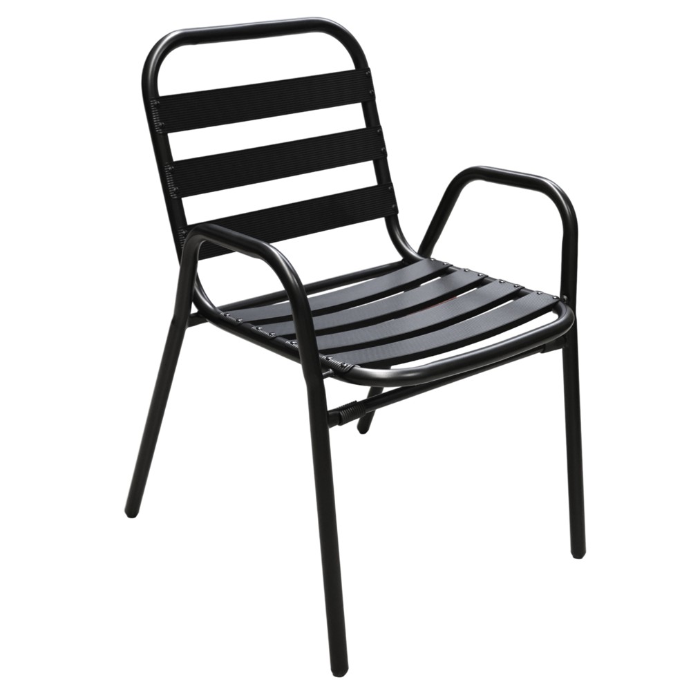 This metal outdoor chair with arms has a durable black frame, offering a modern and elegant look. Measuring 54x55xH76 cm, it offers a comfortable seat and excellent support, while the arm adds an extra level of comfort and support. Suitable for use in the garden, veranda, balcony or any outdoor environment, this chair is ideal for those looking for functional and stylish furniture. The black color gives it a simple and sophisticated aesthetic, which easily fits into any type of outdoor decor.