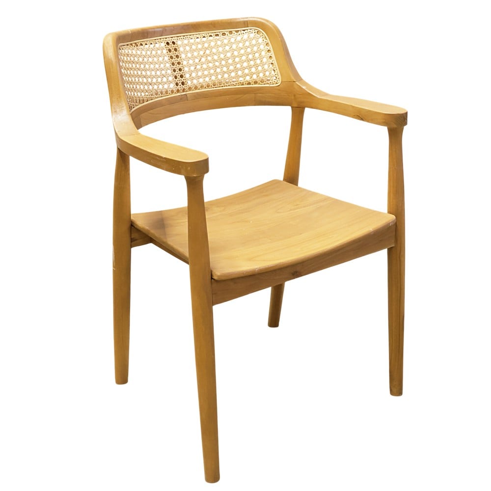 This outdoor armchair is an elegant and practical choice for those looking for comfort and style in their outdoor spaces. Constructed from tropical Teak wood and finished with rattan weaving, this chair offers a great combination of naturalness and durability. Measuring 58x58xH85 cm, it offers excellent support for relaxation, while its armrests add an element of comfort and style. Teak wood is known for its resistance to weather conditions and the passage of time, while the rattan weaving gives it a light and natural look, ideal for gardens, verandas, balconies or terraces. This simple and elegant design is easy to maintain and is an excellent option for creating a warm and relaxing atmosphere in outdoor spaces.