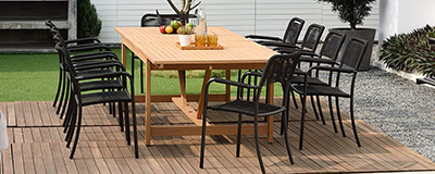 There is nothing more enjoyable and relaxing than a family meal outdoors. Decorate your outdoor spaces with wodden, plastic, metal or glass tables while also saving space and have the whole family seat together, due to the practical sizes and dimensions we have available.