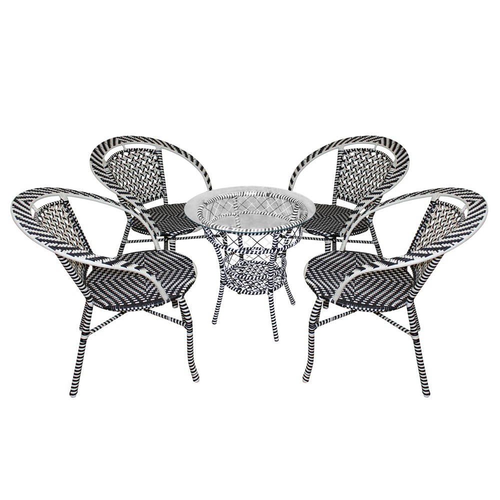 This black and white set, consisting of tables + glass and four chairs, with a very appropriate form in design being combined with classic lines and modern, fits very well everywhere. Produced by Ratan PE material quite resistant to atmospheric agents where the lines rattan areworked quite nicely, combined with enough elegance.
