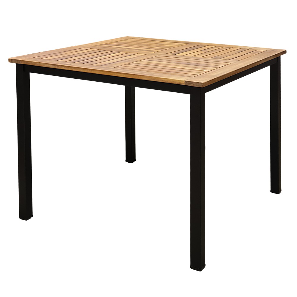 This outdoor table is a great combination of tropical Acacia wood and metal structure, offering durability and elegance to any outdoor space. Measuring 90x90xH75 cm, the table offers a spacious surface for serving drinks, food, or for placing accessories and decorations, making it ideal for use in the garden, veranda, balcony or terrace. Acacia wood is natural and weather-resistant, while the metal structure provides additional strength and stability. This modern and simple design will give any space a warm and sophisticated atmosphere, while it is also easy to clean and maintain, ensuring long-term use in different weather conditions.