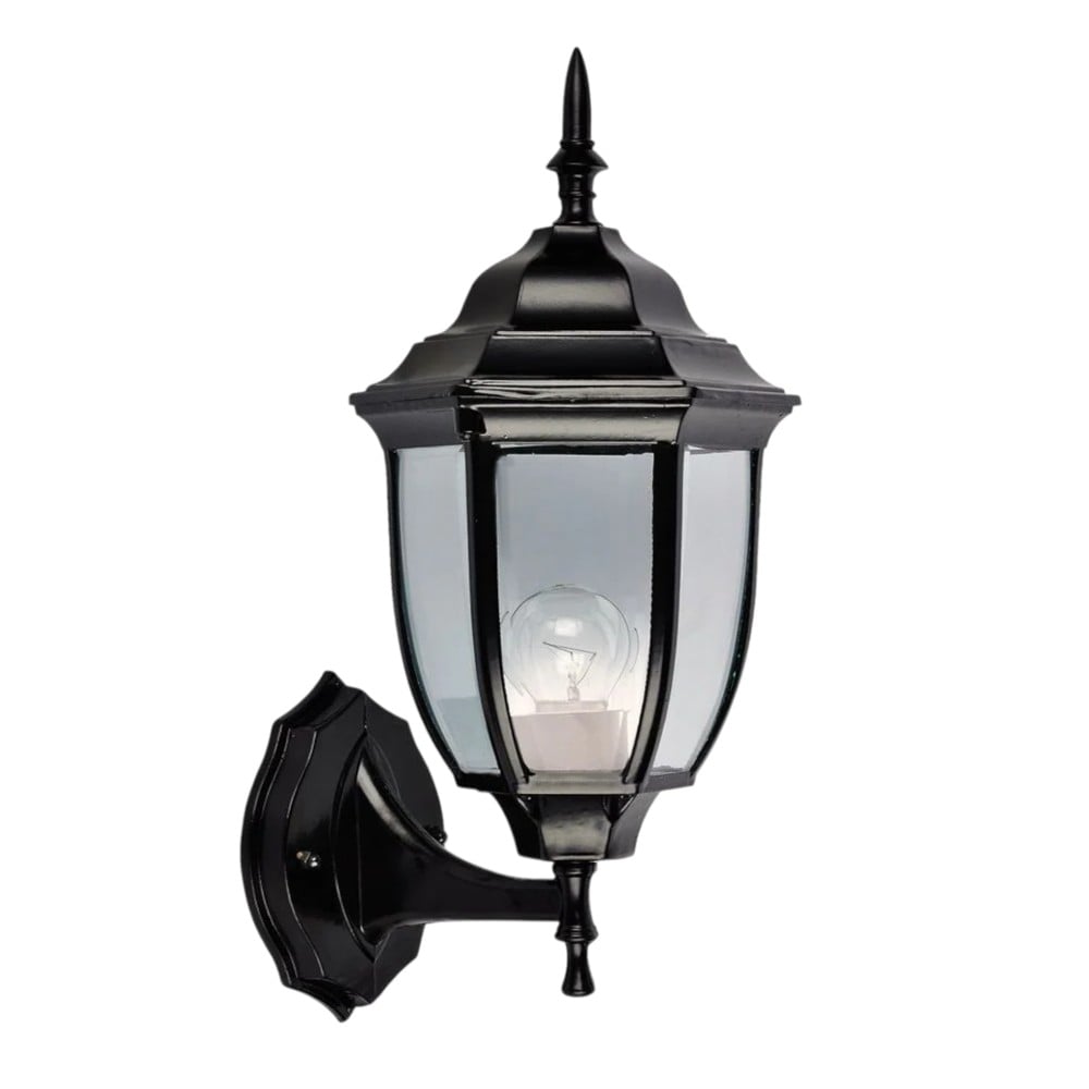 Outdoor wall light with E27 base, in black color, with aluminum and glass body. Dimensions 16×22×36 cm and IP44 protection, which ensures resistance to water splashes and dust. Suitable for outdoor lighting of facades, entrances and courtyards, with modern and durable design.