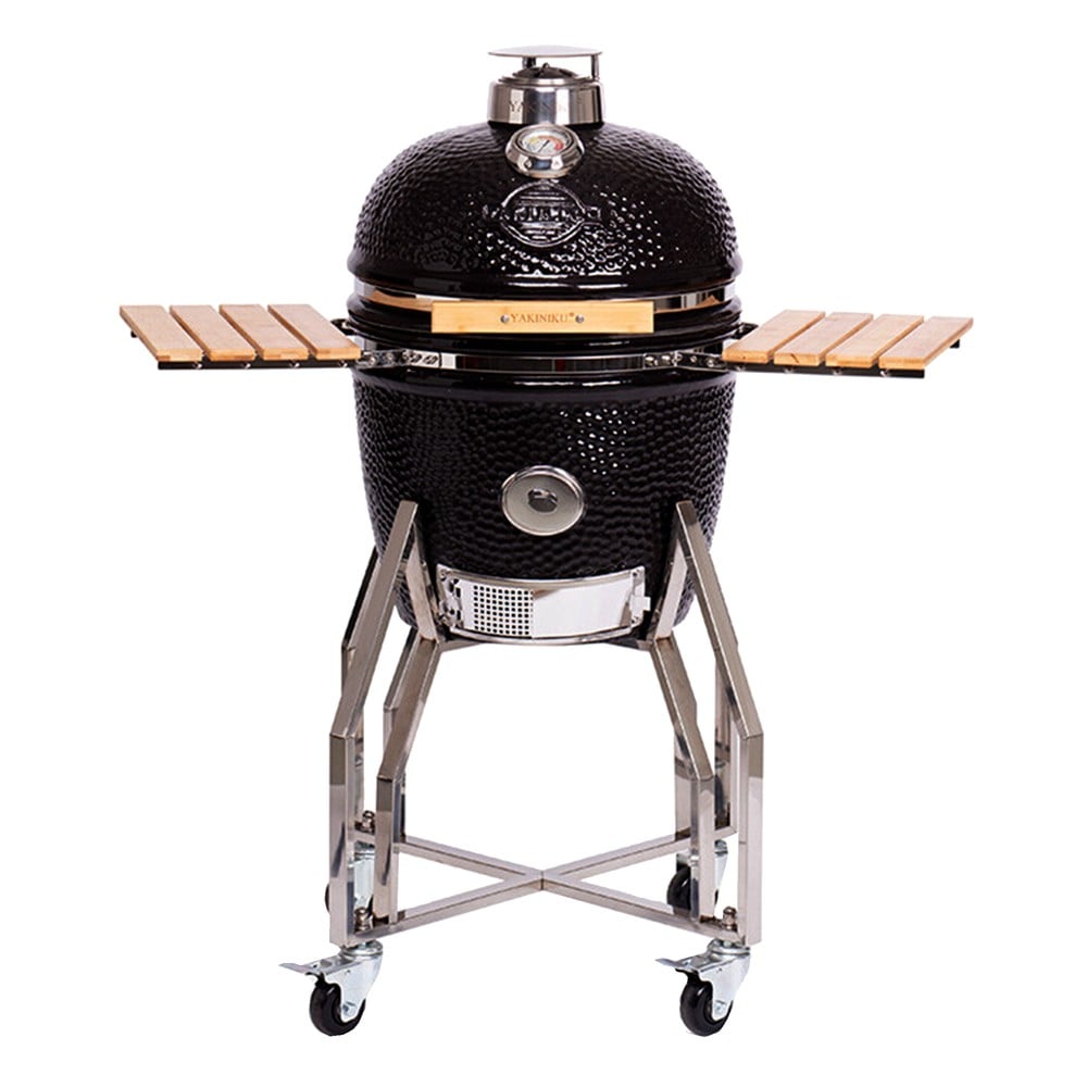 The oven-shaped grill, Yakiniku medium, is made of ceramic material and stainless steel, making it indescribable from atmospheric conditions. Thanks to its 41 cm grill, you can cook delicious meals for at least 5 people, also the grill can be raised or lowered to the right height. Kamado can also be transformed into a pizza oven, thanks to the pizza stone, which is resistant to temperatures up to 300 degrees. This oven has an airtight and insulated space to place aromatic shavings without burning. It also has a shelf holder to keep dishes warm, and two side holders made of bamboo material. This deflector ensures that the food is not exposed directly to the fire, in order to achieve an ideal cooking. Thanks to its wheeled bases, it can be easily transported to the right space.