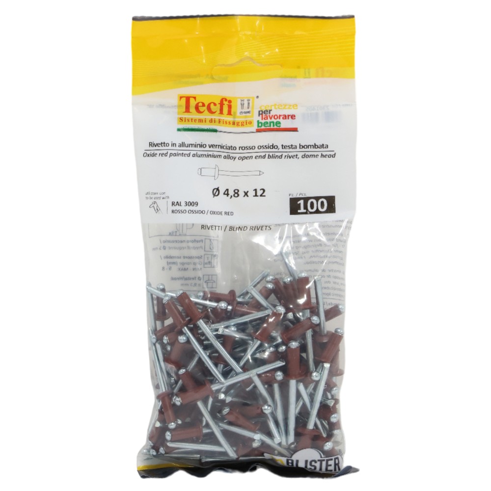 oxide red dome blind rivets, al/zp steel RAL 3009 , Ø 4,8x12mm, Bag 100