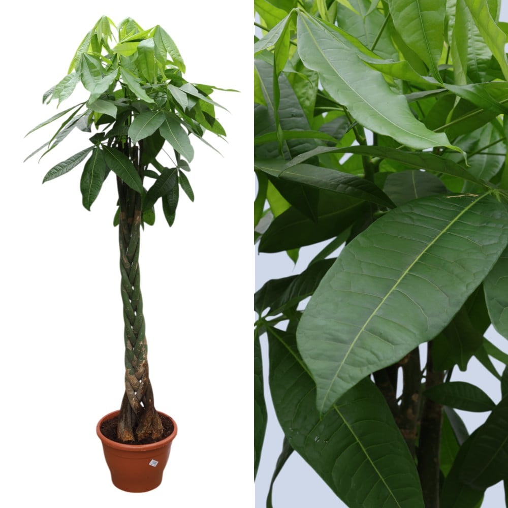 Pachira aquatica is a commonly found houseplant called a money tree. Plants often have their slender trunks braided together, and are a low maintenance option for artificially lit areas. Plant care is easy and based upon just a few specific conditions. These plants like a moderately humid room and deep but infrequent watering. Water the plants until the water runs from the drainage holes and then let them dry out between watering. Remember to fertilize every two weeks as part of plant care. Use a liquid plant food, suspend fertilizing in winter.