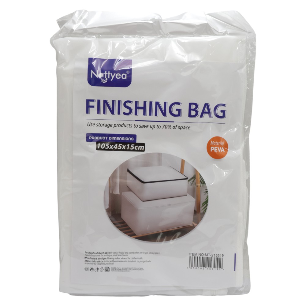 Storage bag made of durable polyester in white, with dimensions 80x45x15 cm. Ideal for storing and organizing clothes, pillows or various items in a clean and tidy way. The lightweight and resistant material makes this bag suitable for daily use and long term storage.