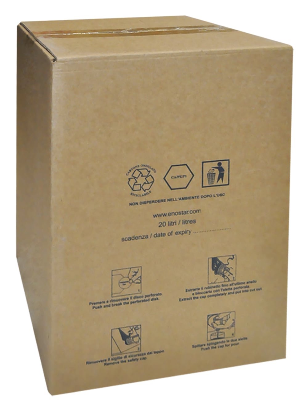 20 liter cardboard packaging box for summer aluminum bag. It is used with the aluminum bag, which, after being filled with wine, is placed inside the cardboard box for protection against shocks.