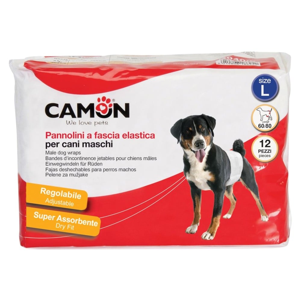 Camon dog diapers are an excellent solution for keeping your beloved pet clean and comfortable. Designed for dogs that need help during periods of aging or for those who spend a lot of time indoors, this product is very convenient and easy to use. The Camon diaper has a dimension of Ø 60/80 cm (size L), ideally fitting large dogs, providing a secure and comfortable cover. Available in a pack of 12, it offers a durable and economical solution for daily use. The diaper is designed to provide a tight and comfortable fit, preventing leakage and keeping your dog clean and fresh. This product is safe for long-term use and will not cause irritation or discomfort to your dog. Camon diapers offer maximum protection and an easy way to maintain a clean and fresh environment.