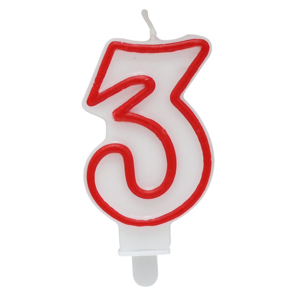 Decorative candle for parties, in the shape of the number 3, measuring 6.5 cm. Used to place on cakes, during birthday parties or various anniversaries.