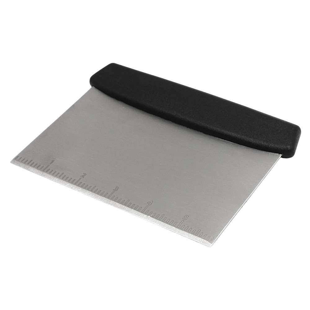 The dough cutter is made from high-quality stainless steel, featuring a silver color and a practical design. Measuring 15×12.1 cm, it is sturdy, durable, and ideal for cutting dough, shaping it, and scraping work surfaces in the kitchen.