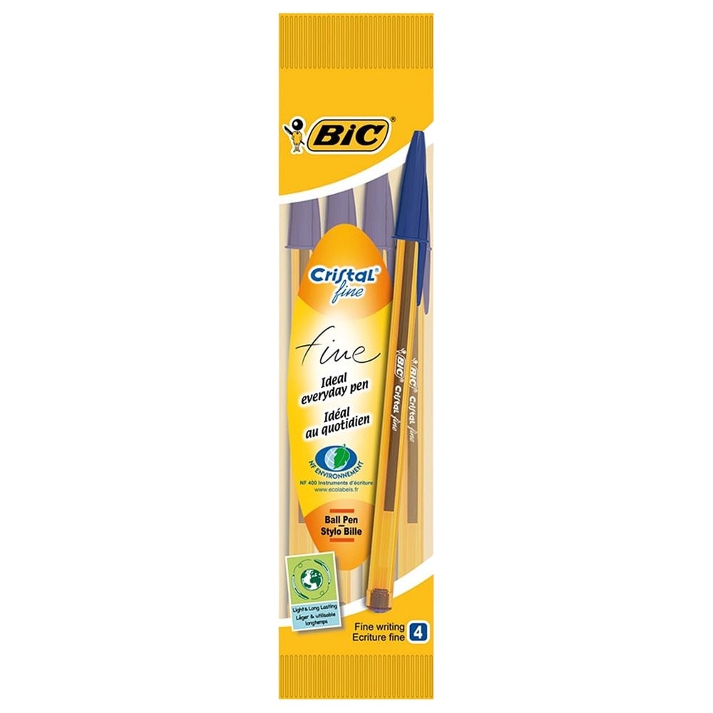 Crystal ballpoint pen, has excellent performance and is equipped with a cap for safety. The package contains 4 pens in blue color.