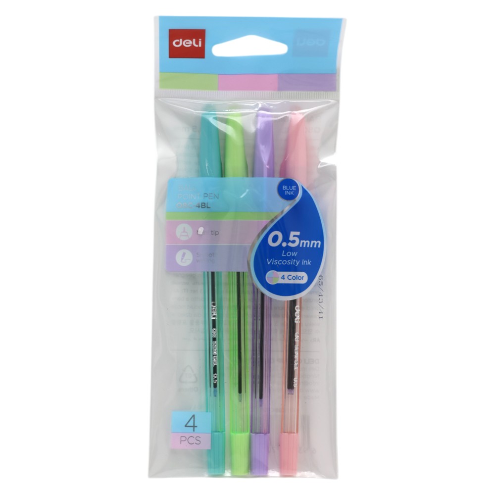 Pen, Deli, Ballpoint, 0.7mm, 4 pieces, 1 pack
