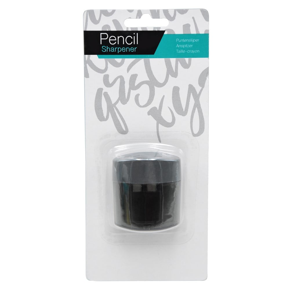 Pencil sharpener, made of durable plastic material and metal blade, in a circular shape, with a height of 5 cm, in different colors. The pencil sharpener is equipped with a 0.8 cm diameter socket, with a 1.2 cm diameter socket and with a cartridge to carry pencil splinters. It is used for sharpening wooden pencils and synthetic resin pencils, without damaging their shape and without breaking the tips of the pencils. This product is suitable for use by children over 3 years of age.