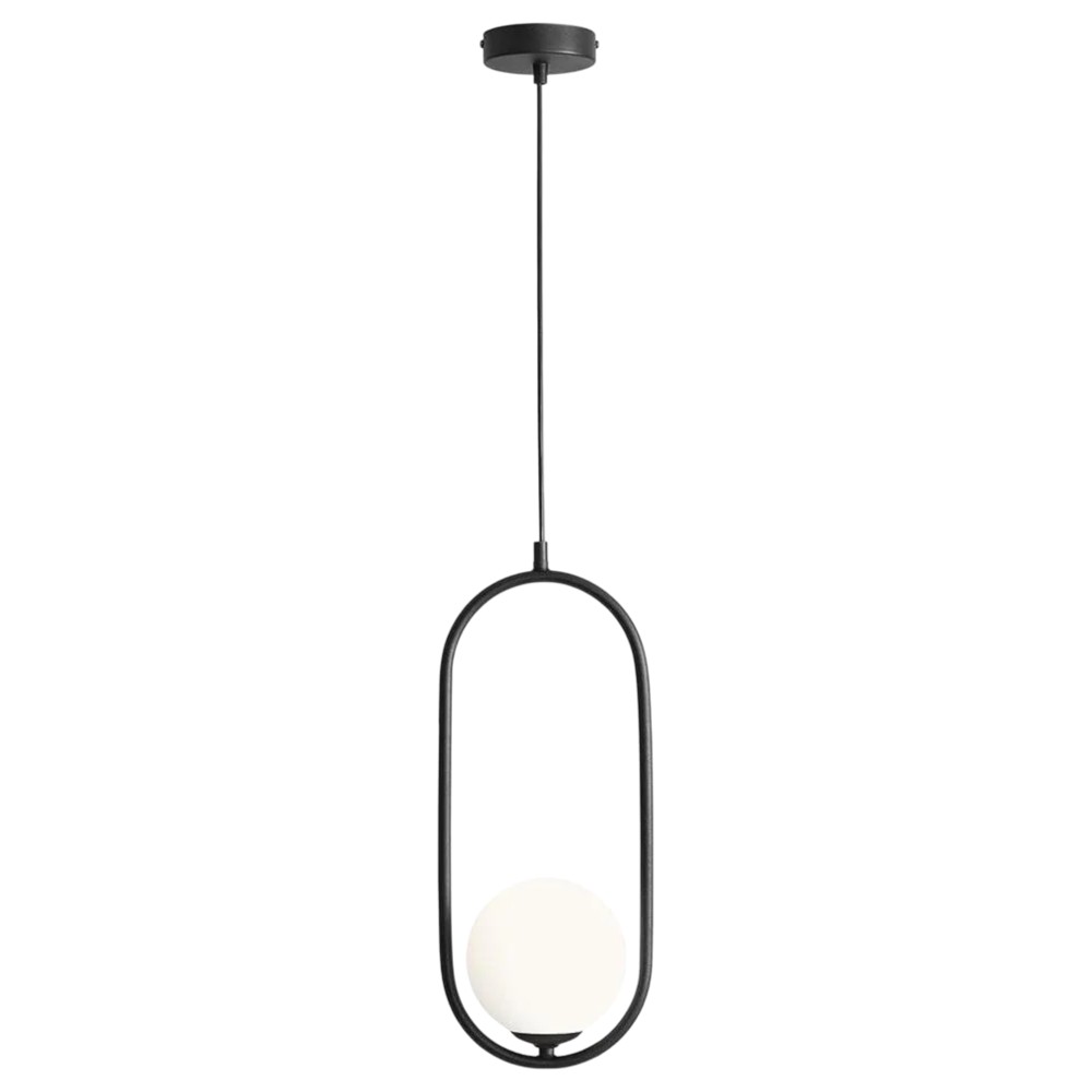 Pendant lamp with E27 light source, black glass globe design, diameter 15 cm. Minimalist and modern style, ideal for decorative lighting in living rooms, kitchens or other interiors with an industrial or contemporary style.