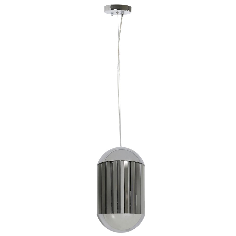 Pendant light E27, with a metallic body, gray/chrome color, with dimensions of 24x45 cm. This light features a modern and elegant design, suitable for various environments such as kitchens, dining rooms, or other spaces. The combination of gray and chrome colors makes it an excellent choice for creating a refined and warm atmosphere, adding style and beautiful lighting to any space.