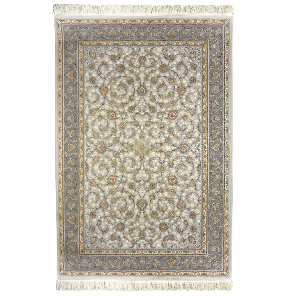 Persian carpet with 100% acrylic composition. Gray color with different colors. Cotton fringes and a very high density of 2 million 400 thousand knots per square meter give this carpet quality and longevity. Thanks to the very high density the carpet is safe from impurities because if it is cleaned immediately they will not be able to penetrate the base of the carpet. Thread length 6mm. Recommended to wash professionally.