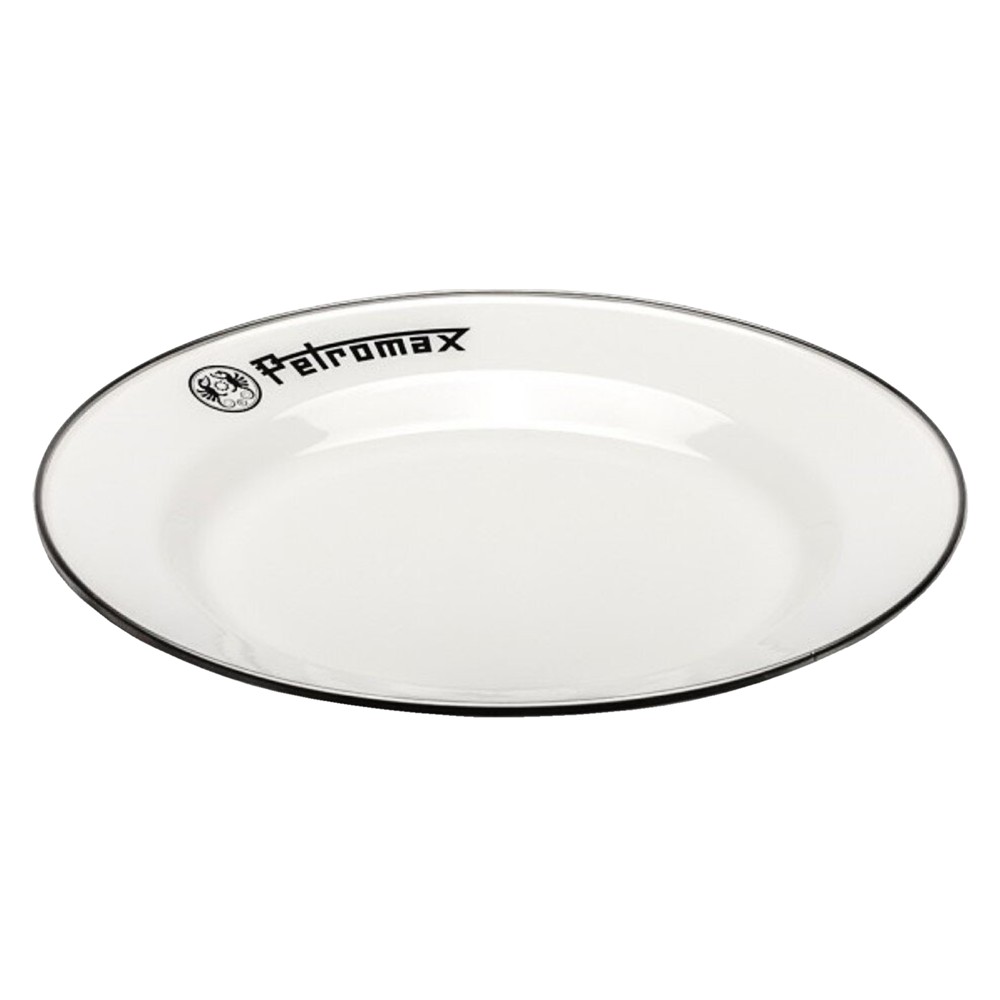 Petromax Black Enamel Camping Plates have a hard black enamel finish with the Petromax twin dragon logo and a stainless steel rim. The combination of glass and steel results in a strong and easy to clean material, it is not only heat resistant but also lightweight. The combustible surface is resistant to scratches and cuts. Used for camping, by the fire or at home.