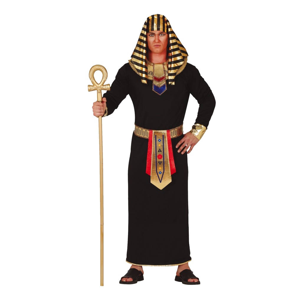Pharaoh costume for adults, made of polyester material, in black color, size 48/50. The component material is soft to the touch and does not cause irritation to the skin. This product is suitable for use at parties such as Halloween, carnivals or other costume parties.