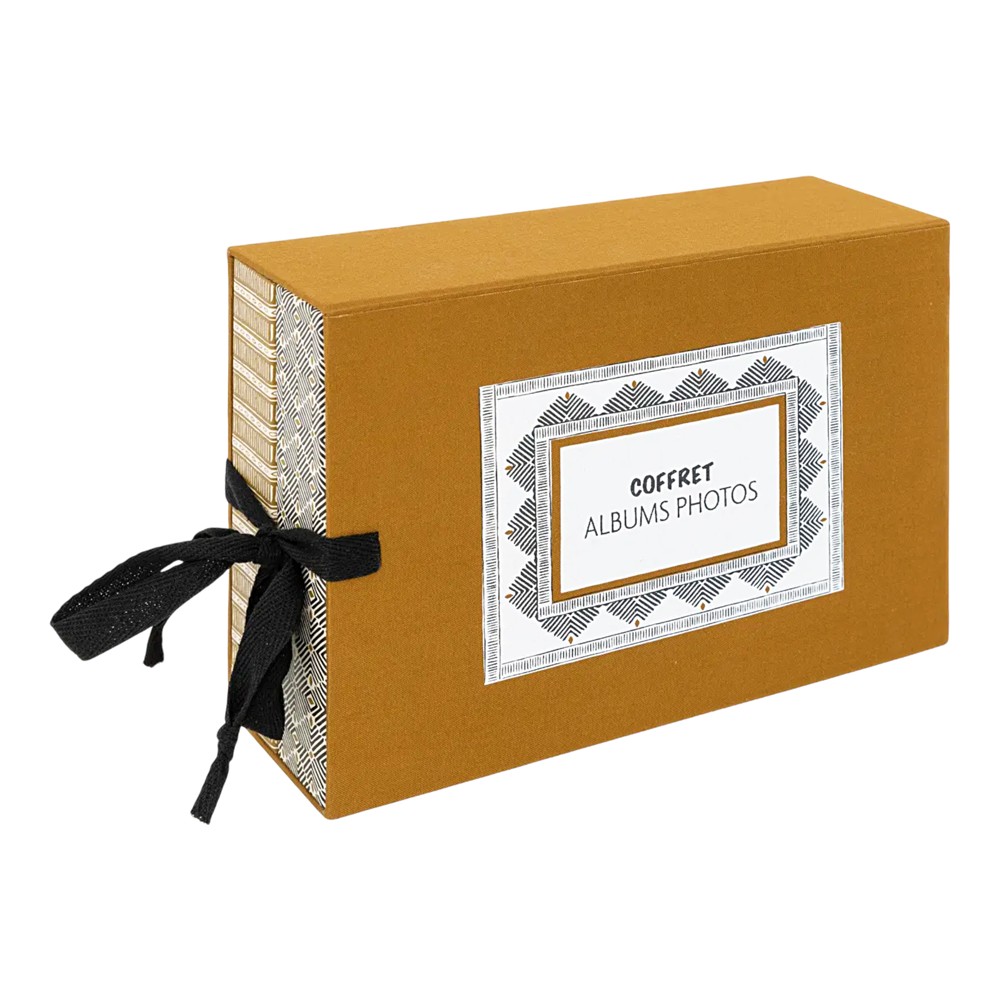 Photo album, Paloma, set 2 pieces, cardboard/plastic, mustard/black, 240 photos