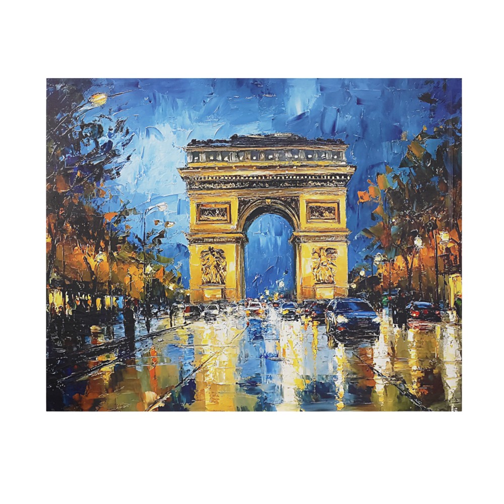 The painting, “Arc de Triomphe”, measuring 80x100 cm, presents an artistic interpretation of one of the most recognizable symbols of Paris. The majestic monument stands at the center of the composition, surrounded by rich colors and contrasts that reflect the elegant and dynamic atmosphere of the city. With a contemporary visual style and carefully crafted details, this work is ideal for environments that require an urban, historical and artistic touch at the same time.