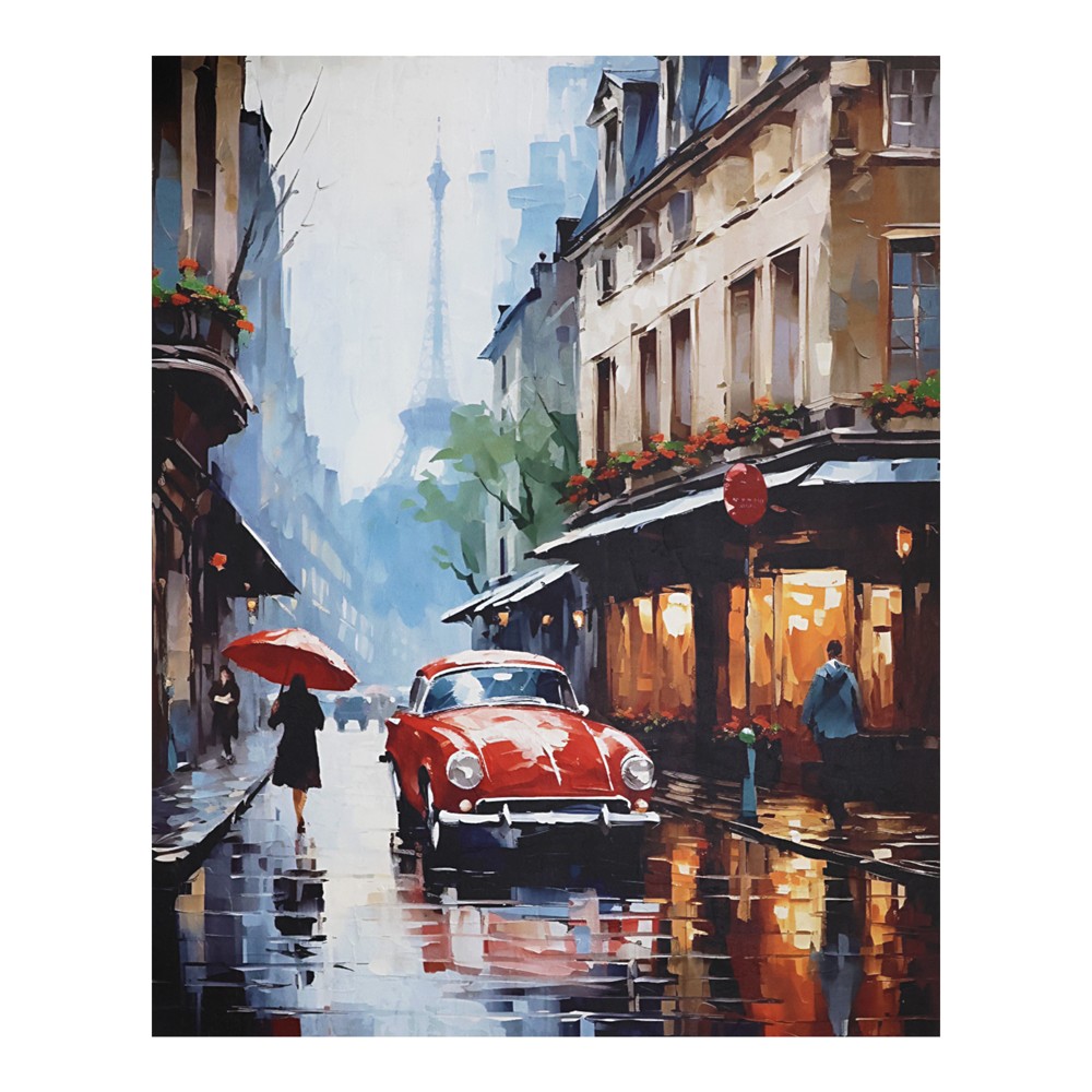 The painting, “Paris”, measuring 80x100 cm, brings an artistic and atmospheric view of the city of love. The composition includes iconic elements of Paris, such as the Eiffel Tower, characteristic alleys and urban lights, interpreted with rich colors and soft contrasts. This work transmits a romantic feeling, being ideal for spaces that require elegance, sensitivity and a connection to European art and culture.