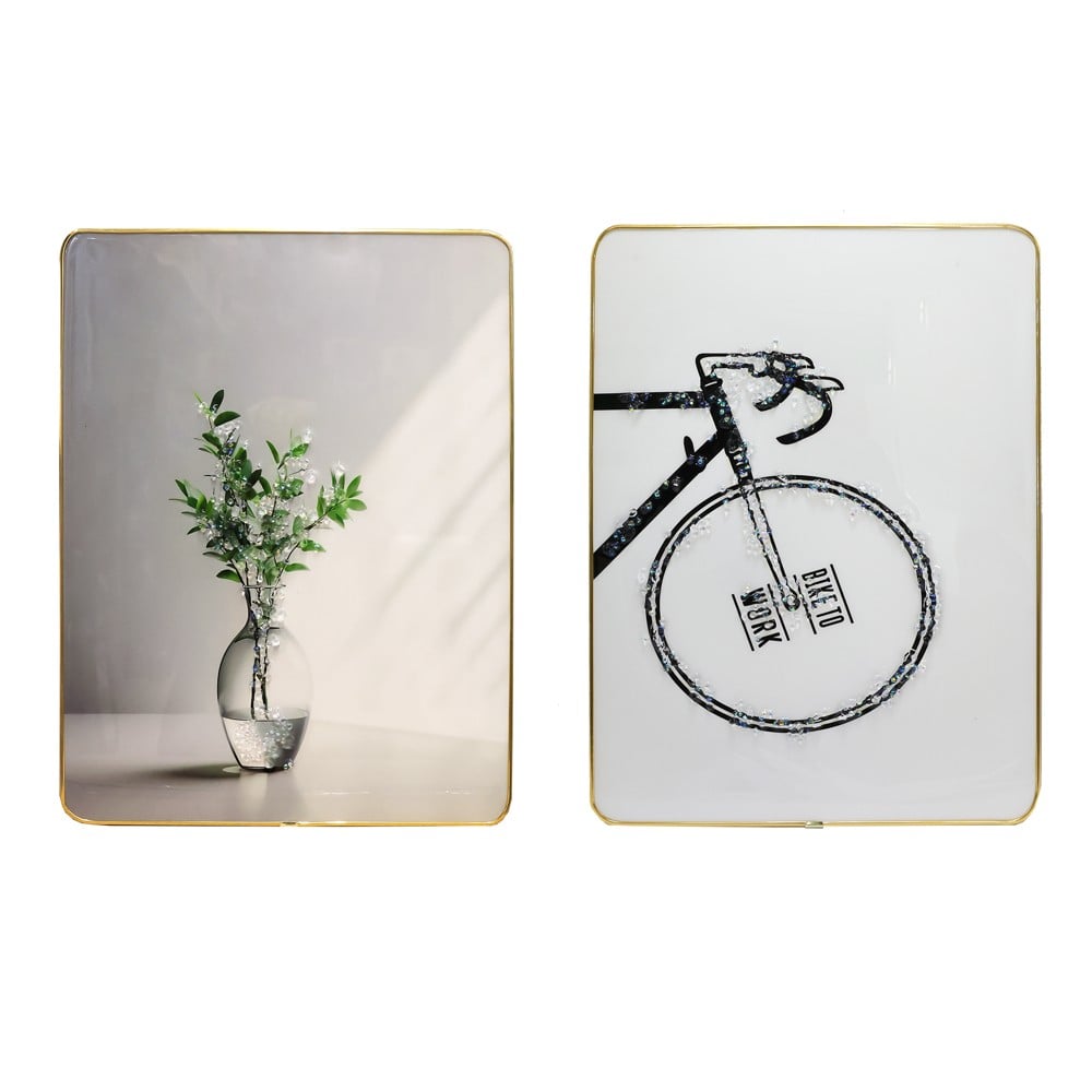 Decorative paintings with metal frames, size 30x40 cm. They include various motifs such as bicycles and vases with decorative plants, made in a modern style and neutral colors. Ideal for decorating walls in the living room, hallway, office or bedroom, bringing a warm and elegant atmosphere.