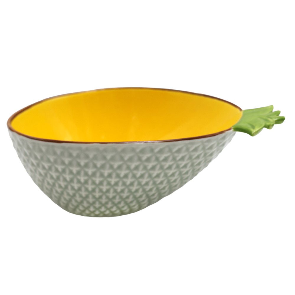 Pineapple-shaped plate, made of ceramic and in yellow color, has dimensions of 20.5x14.5 cm. This plate has a unique design in the shape of a pineapple, making it an attractive addition to your table decor or home environment. The yellow color gives it a fresh and cheerful touch, making it suitable for festive occasions or for everyday use. Ceramic materials make it durable and suitable for everyday use.