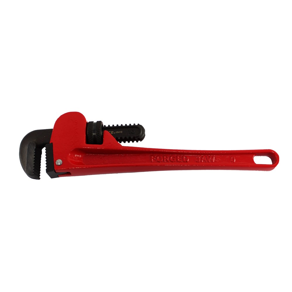 Professional Heavy-Duty Pipe Wrench adjusts to accommodate pipes up to 28 wide. Is ideal for all heavy work,such as oil refinery,platforms, hight preassure pneumatic instalation etc. The wrench's heat-treated drop forged jaws and baked-on red enamel painted finish provide long-lasting durability. Adjustable nut in the handle 2 in. Jaw capacity Heat-treated drop forged jaws Baked-on red enamel painted finish