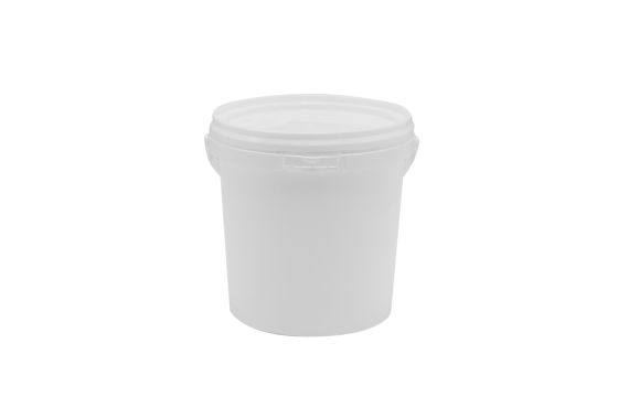 The white circular plastic bucket with a capacity of 1.2 liters is a suitable solution for many uses, especially for the food industry. This product offers a simple and efficient solution for their transport and storage.