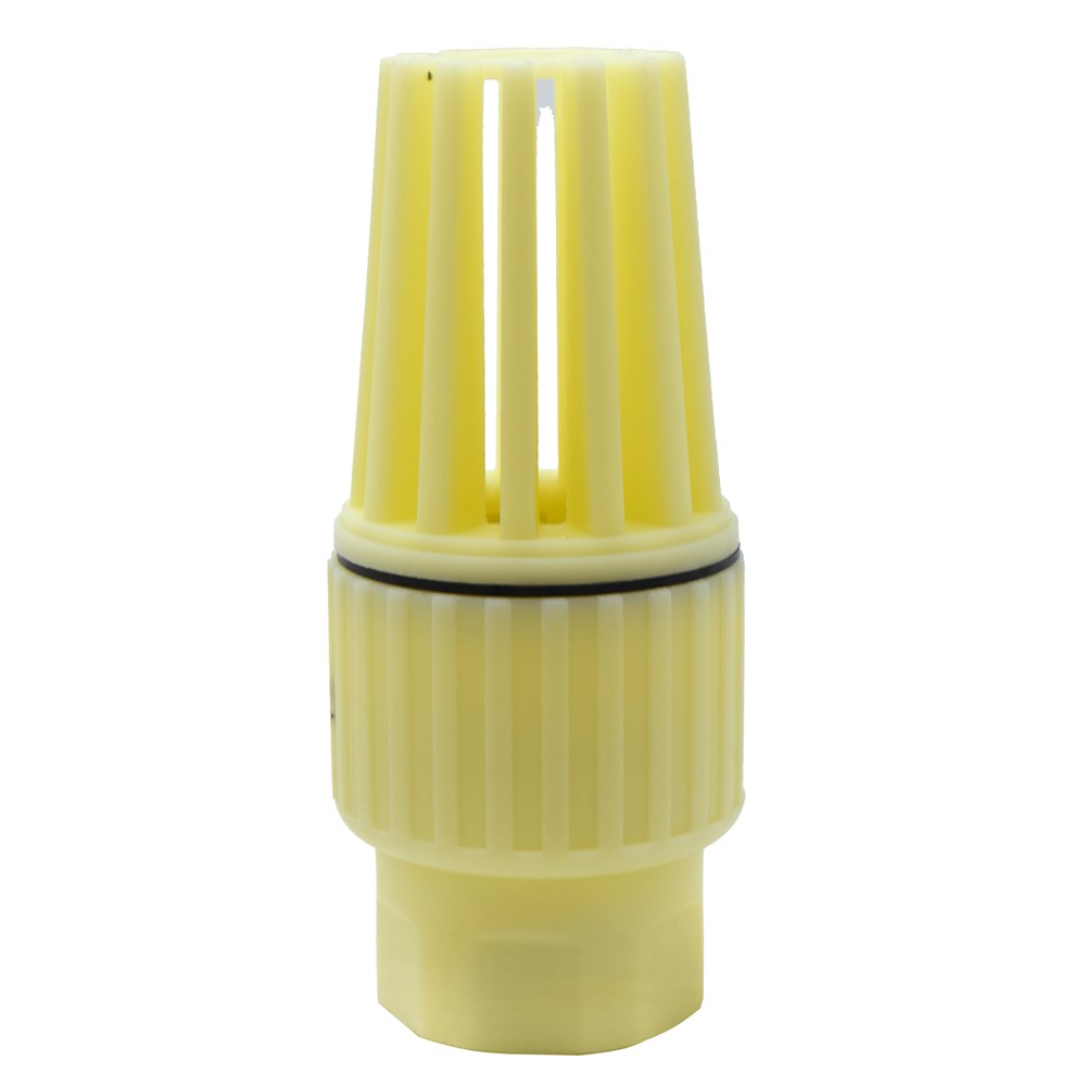 Plastic valve with section 1'' for water pumps. Used to filter water and to prevent solids from clogging the pump, the plastic material is highly resistant.