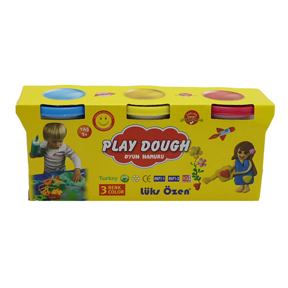 Play Dough children's plasticine, which includes 3 different colors. Plasticine is an excellent material for creative activities and children's games. It can be used to form figures, sculptures, and various artistic creations. With the wide range of colors, children can express their imagination and create many different works.