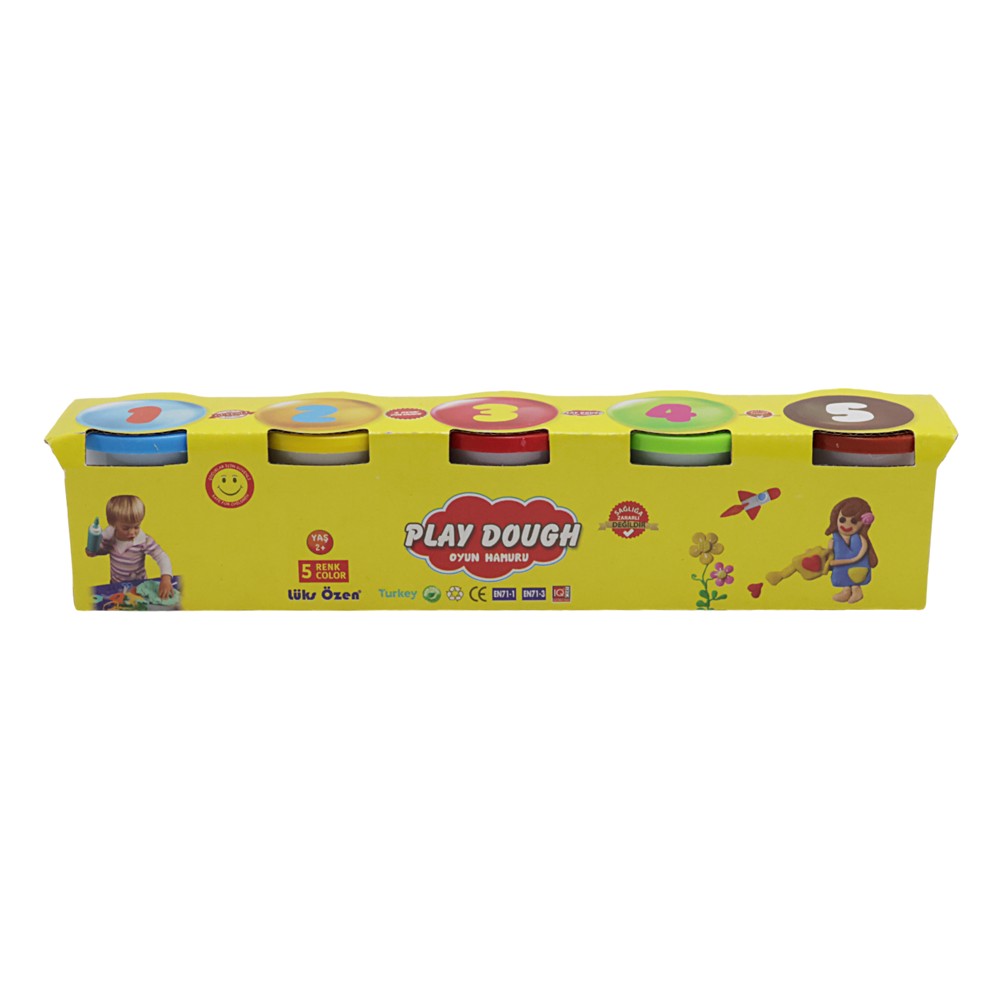 Play Dough children's plasticine, which includes 5 different colors. Plasticine is an excellent material for creative activities and children's games. It can be used to form figures, sculptures, and various artistic creations. With the wide range of colors, children can express their imagination and create many different works.