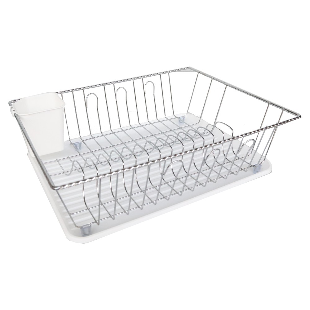 Plate holder, draining tray, chrome/plastic, white, 43x32xH13.5 cm