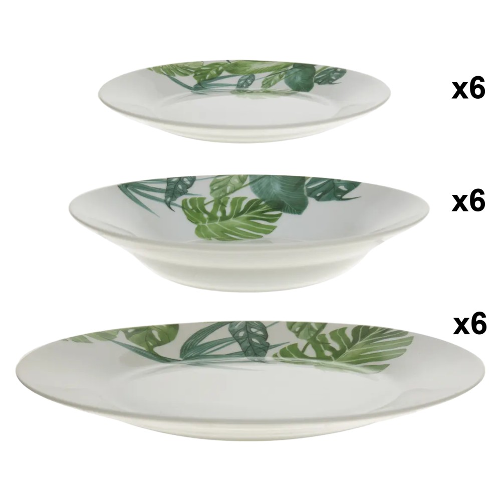 Plate set Tropica (Pk 18), porcelain, white leaf design, Dia.19/Dia.20/Dia.27 cm
