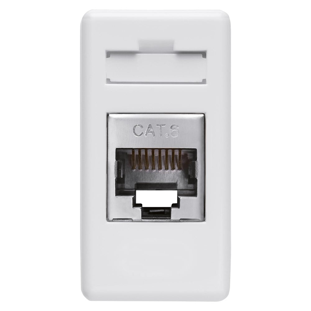 This RJ45 mains socket does not allow signal loss, it is modular and in white.